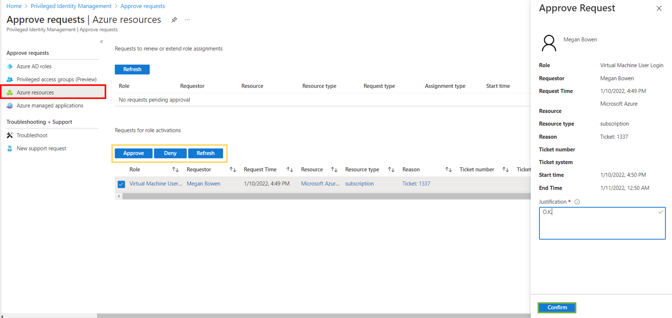 In the Azure Portal, open PIM, select Azure resources and your subscription.